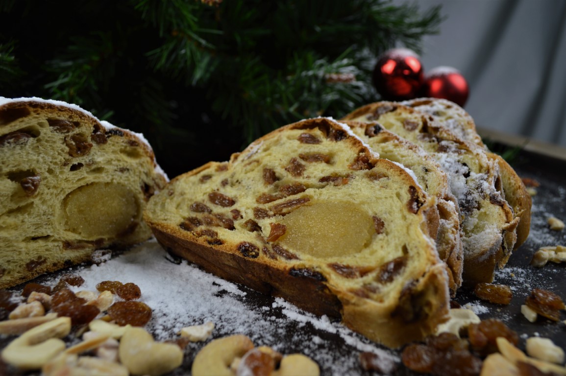 rozijnen (29%), TARWEbloem, water, AMANDELEN (8%), suiker, gist, roomboter(MELK) (3%), MELKpoeder, CASHEWNOTEN, HAZELNOTEN, botervet(MELK), EI-EIwit, bakkerszout, dextrose(TARWE), Emulgator(E471, E481), EI, citroen, Plantaardige Olie(katoenzaad, koolzaad, raapzaad), SOJAbloem, glucosestroop, Aroma(aroma), rum, karamelstroop, Antiklontermiddel(E535), citroenvezel, Conserveermiddel(E202), dextrose, enzymen, enzymen(TARWE), kaliumjodide, Kruiden En Specerijen(kurkuma-extract), Meelverbeteraar(E920), Stabilisator(E415), veldbonenmeel, Verdikkingsmiddel(E415, E466), Zuurteregelaar(E330)